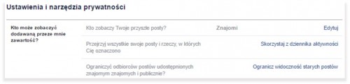 Najbardziej rozsądną decyzją jest nieudostępnianie swoich prywatnych postów szerokiej publiczności. Najczęściej zawierają one wiele szczegółów na temat naszego życia prywatnego, przyjaciół czy rodziny i mogą zostać wykorzystane przez osoby postronne kierujące się złym zamiarem. Za każdym razem gdy udostępniamy coś na Facebooku możemy wybrać poziom prywatności posta w rozwijanym menu po lewej stronie przycisku „Opublikuj”. Zalecamy wybór opcji „Znajomi” lub innego filtra niż „Publiczne”. Zawsze należy upewnić się, by włączyć to ustawienie, ponieważ domyślnym ustawieniem Facebooka jest opcja udostępniania postów do publicznej wiadomości, czyli ich widoczność dla wszystkich. Jeśli nie masz pewności, w jaki sposób zostały opublikowane twoje wcześniejsze posty – czy są dostępne publicznie czy tylko dla znajomych, możesz zmienić to w bardzo prosty sposób: