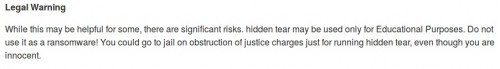 Regulacje prawne w README.md Hidden Tear Ransomware zanim projekt został porzucony.
