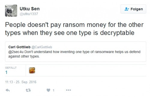 „Myślę, że nie rozumiecie sedna działania ransomware. On nie uszkadza systemu ani go nie infekuje. To po prostu szyfrowanie plików.” (Sic!, Utku Sen)