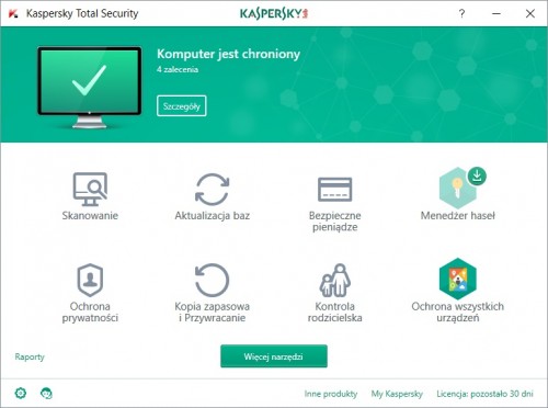 • Kaspersky Total Security: 199 zł (cena bazowej licencji rocznej na ochronę dwóch urządzeń wybranych dowolnie z następującej listy: komputer PC, komputer Mac, smartfon/tablet z Androidem),