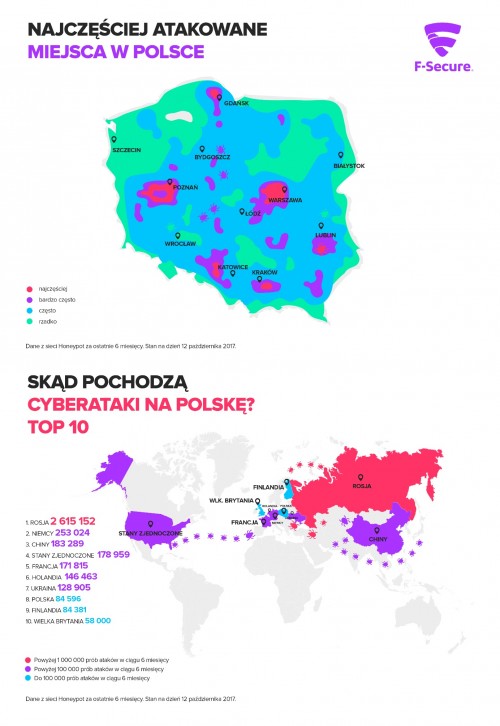 Firma F-Secure, dostawca rozwiązań z zakresu cyberbezpieczeństwa, przedstawiła dane dotyczące cyberataków na Polskę przeprowadzonych w ciągu ostatnich sześciu miesięcy. Informacje zostały uzyskane dzięki autorskiej sieci Honeypotów, czyli serwerów, które udają łatwy cel i są przynętą dla cyberprzestępców. Hakerzy atakują je i dzięki temu możliwe jest pozyskanie cennych danych oraz opracowywanie kolejnych metod walki z cyberzagrożeniami.