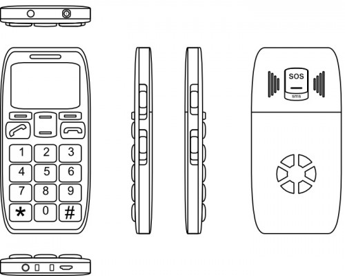 - Przycisk SOS dwustopniowy (przyciśnięcie – sygnał dźwiękowo-alarmowy, przesunięcie – nawiązanie połączeń z zaprogramowanymi numerami, wysłanie sms-ów.