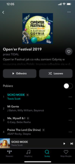 Playlista „Open’er Festival 2019”: https://tidal.com/playlist2