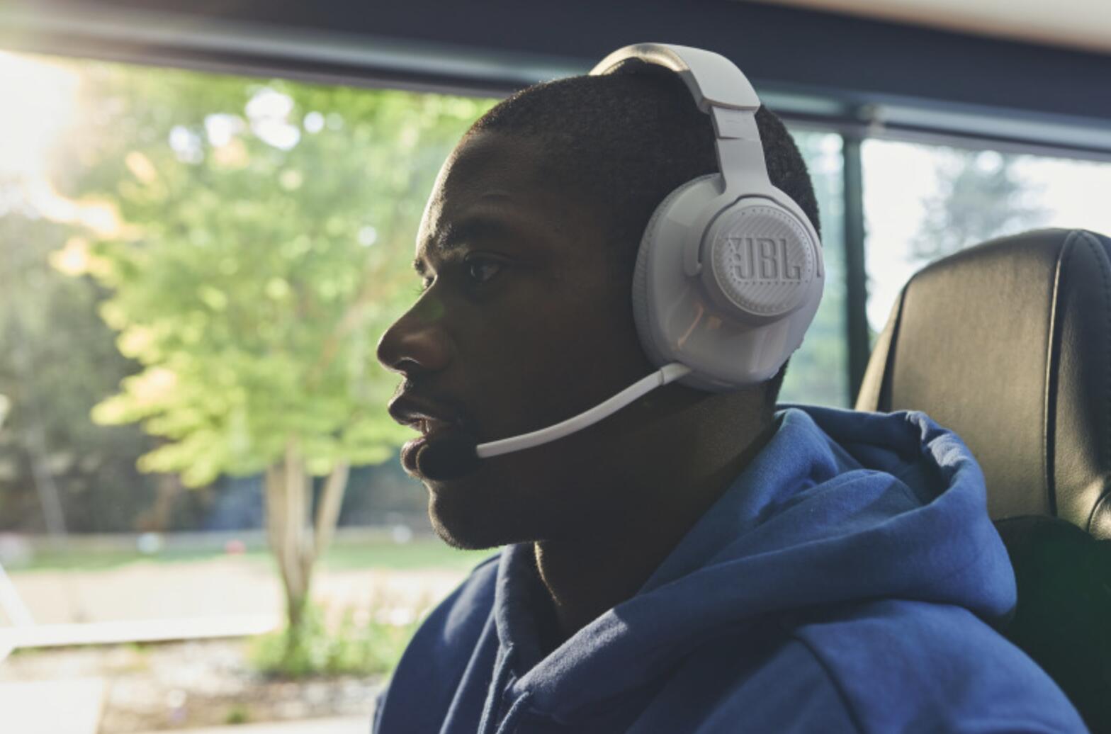 Odłączany mikrofon kierunkowy na wysięgniku z funkcją Voice Focus w modelu JBL Quantum 360 Wireless sprawia, że kompani w grze zawsze mogą usłyszeć użytkownika, nawet gdy w grze zrobi się bardzo głośno. Dostępna jest również przydatna funkcja wyciszania, aby wejść w tryb ciszy i wykonać sekretną misję w realnym świecie.