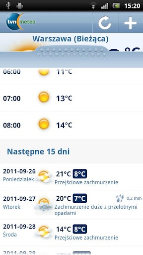 Oprócz aktualnych warunków, możemy również sprawdzić prognozę na najbliższe 24 godziny oraz prognozę długoterminową – na najbliższe 15 dni.