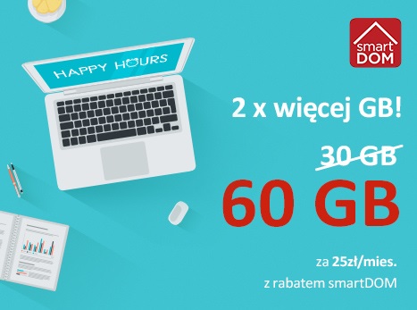 Na zakończenie lata Cyfrowy Polsat przygotował specjalną promocję – klienci, którzy do 24 sierpnia złożą zamówienie online na Internet LTE otrzymają aż dwa razy więcej danych niż dotychczas. W ramach programu rabatowego smartDOM pakiet 60 GB dostępny jest w promocyjnej cenie 25 zł miesięcznie przez cały okres użytkowania usługi. Ale to nie wszystko. Cena Pakietu Nocnego, w którym do wykorzystania w godzinach 1:00 – 8:00 jest aż 200 GB, wynosi 0 zł.
