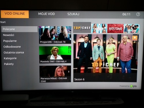 EVOBOX PVR, to nie tylko dekoder przeznaczony do odbioru satelitarnej telewizji cyfrowej, ale również nowej usługi Cyfrowy Polsat GO (IPLA). Aplikację znajdziemy w zakładce VOD, a w niej treści na żądanie z posiadanego pakietu programowego (catch up TV) oraz bogatą bibliotekę dodatkowych bezpłatnych i płatnych treści telewizyjnych.
