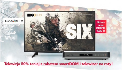 W Cyfrowym Polsacie świąteczny czas tak szybko się nie kończy! Klienci, którzy skorzystają z promocji, będą oglądać ponad 170 kanałów telewizyjnych, w tym kanały Eleven i HBO, oraz treści z serwisu HBO GO – aż przez 6 miesięcy bez opłat. Nadal można zdecydować się także na atrakcyjne sprzęty w niższych ratach (m.in. nowoczesne telewizory LG).