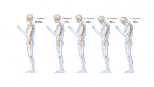 Stopień odchylenia głowy od pionu podczas korzystania z telefonu obrazuje poniższa grafika przygotowana przez Kennetha Hansraja, lekarza chirurga i ortopedę z kliniki Chirurgii i Rehabilitacji Kręgosłupa w Nowym Jorku, który specjalizuje się w schorzeniach kręgosłupa. Warto w tym momencie zastanowić się, jaką pozycję ciała przybieramy, przeglądając strony internetowe na ekranie komórki, korzystając z mediów społecznościowych czy sprawdzając e-maile?
