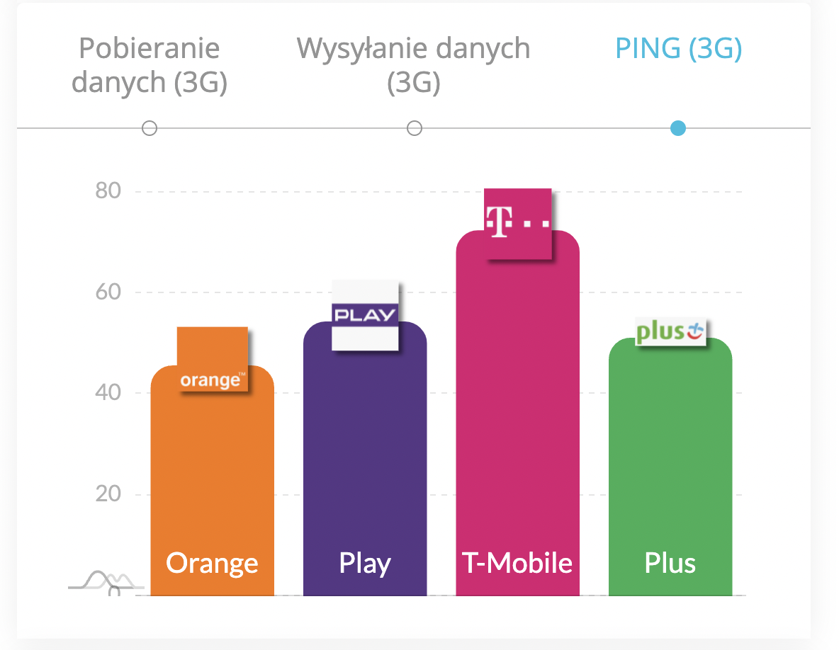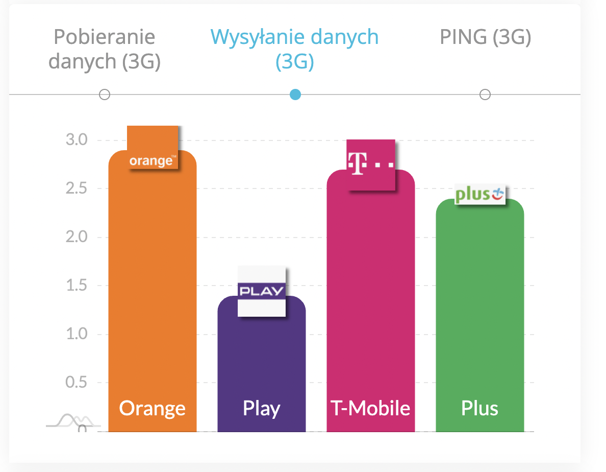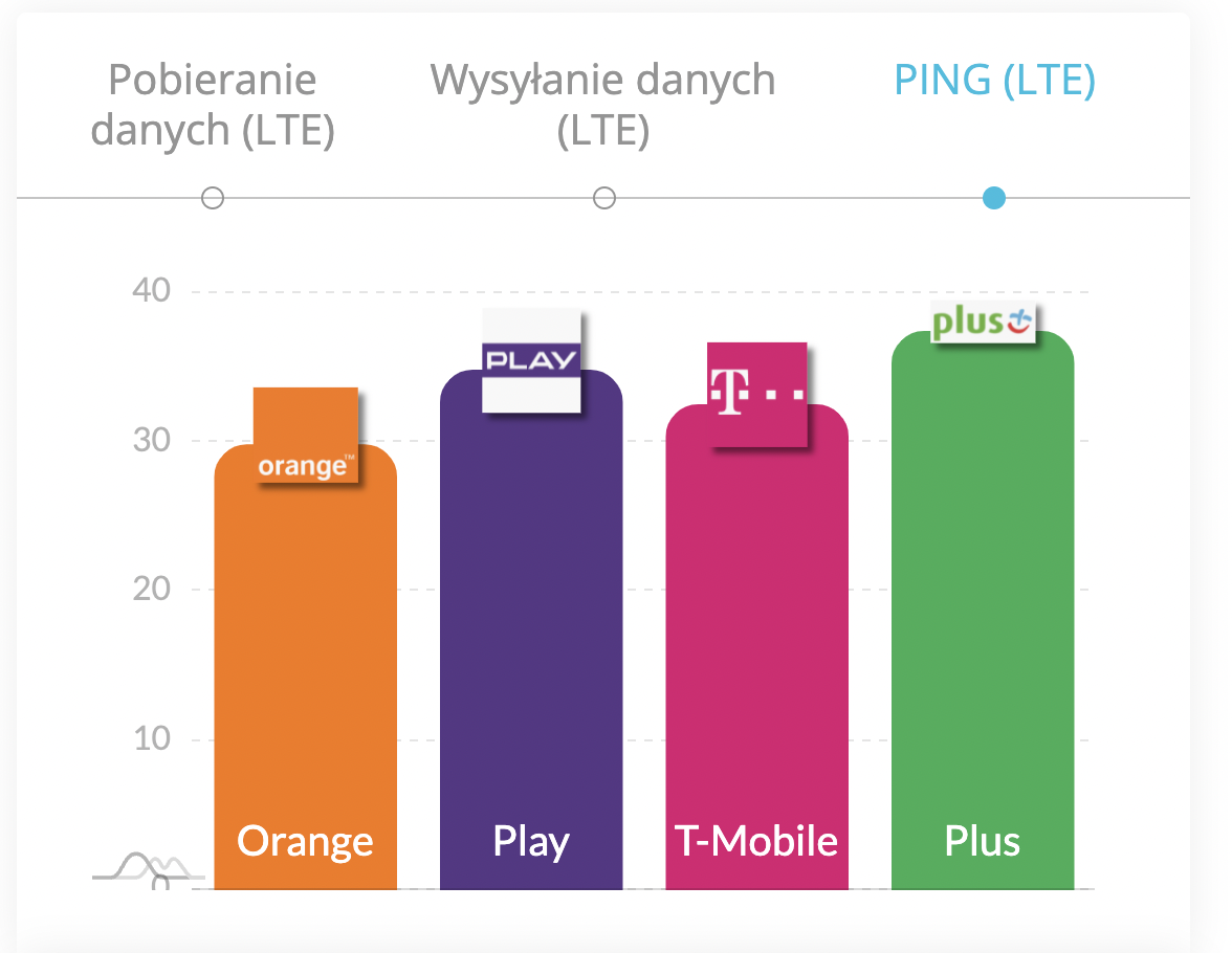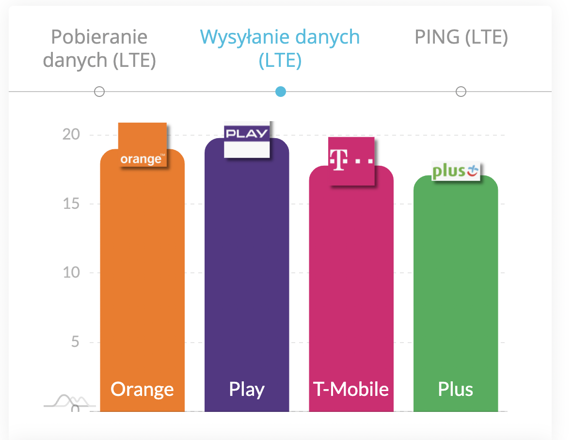 W pozostałych zestawieniach zapanowała względna stabilizacja. Play podtrzymał dobrą passę i osiągnął najlepszy wynik pod względem średniej szybkości wysyłania danych (19,9 Mb/s). Z kolei Orange nie dała się zdetronizować w kategorii najniższego średniego wyniku ping (30,3 Mb/s).