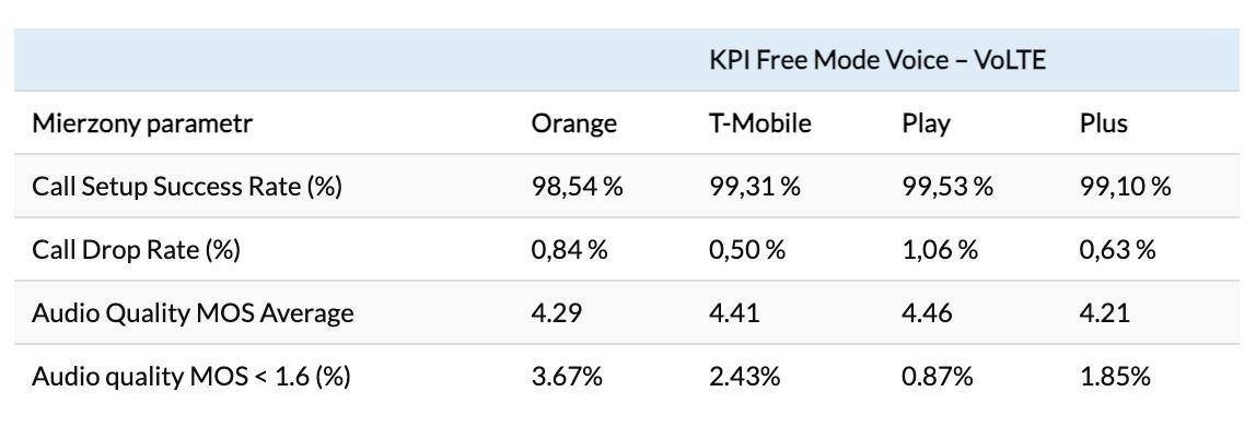 Podsumowując, Play i T-Mobile oferowały najbardziej stabilne i jakościowe rozmowy VoLTE w testowanych warunkach.