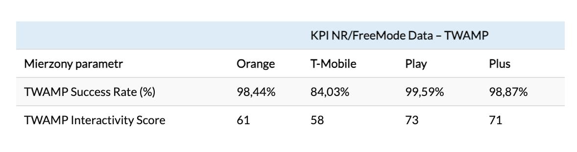 Kolejną kategorią pomiarów był test KPI NR/FreeMode Data – TWAMP