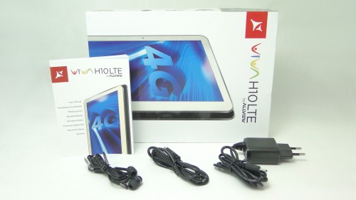 Allview Viva H10 LTE został zapakowany w duże, białe pudełko, które mieści w sobie całkiem bogaty zestaw akcesoriów. Poza ładowarką oraz kablem USB producent nie zapomniał o słuchawkach dokanałowych, a sam tablet ma od razu naklejoną folię ochronną na ekran.