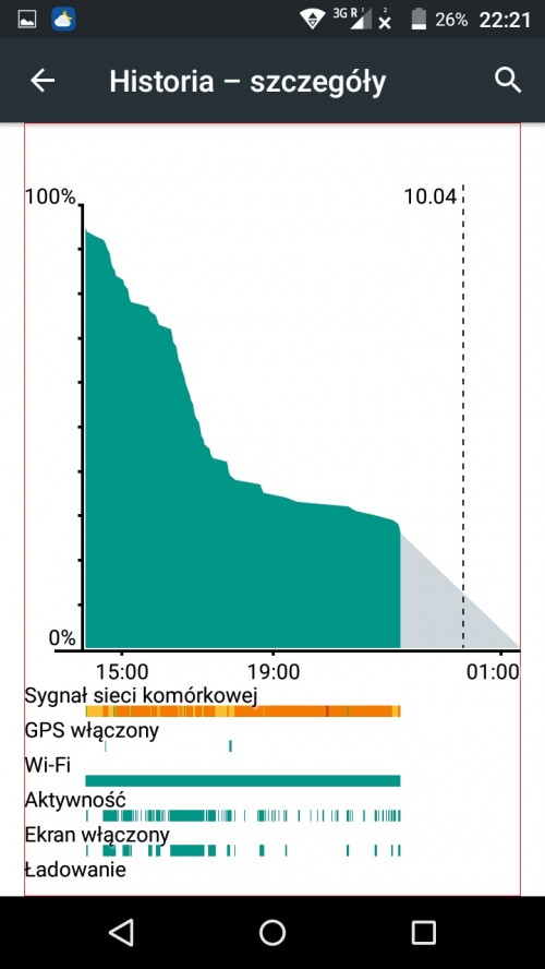 W moim przypadku smartfon upominał się o ponowne naładowanie, po około 12-18 godzinach, w tym czasie przeglądałem pocztę mailową, sporadycznie używałem kamerki i przeprowadzałem kilkuminutowe rozmawy.