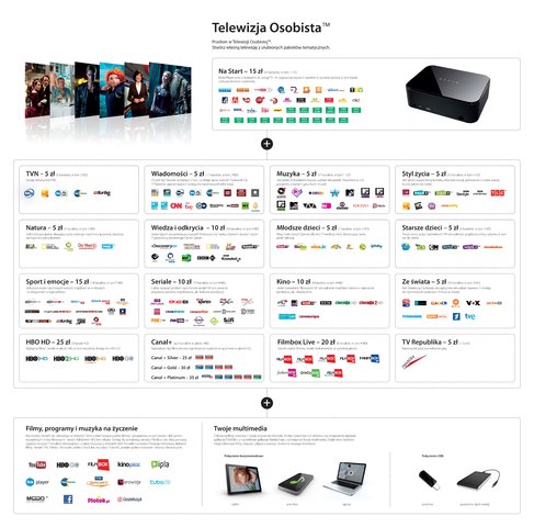 W przeciwieństwie do standardowych ofert płatnej telewizji, nowa oferta Telewizji Osobistej daje użytkownikom bardzo dużą dowolność kształtowania swojej oferty kanałów TV, zgodnie z indywidualnymi potrzebami i zainteresowaniami, w bardzo atrakcyjnej cenie.