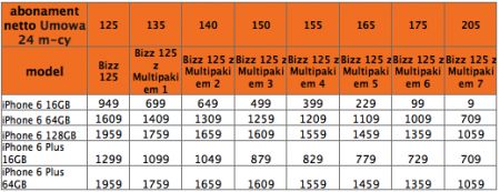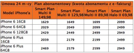 W ofercie dla klientów indywidualnych w punktach sprzedaży, mniejszy model iPhone 6 (4,7 cala) można kupić w cenie od: 1629 zł za model 16 GB, 2029 zł za 64 GB i 2429 zł za 128 GB. Większy iPhone 6 Plus (5,5 cala) jest dostępny od: 2039 zł za model 16 GB, 2469 zł za model 64 GB. Smartfony Apple są również w ofercie dla firm i ceny zaczynają się od 9 zł, a dla klientów przedłużających umowę za 0 zł na start.