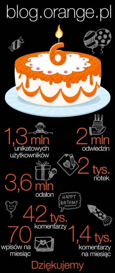 Oficjalny blog firmowy Orange, źródło wiedzy o aktualnej ofercie sieci Orange. Kompendium wiedzy o aktualnych promocjach i nowinkach sieci Orange obchodzi 6 urodziny. Zobaczcie jak te minione 6 lat wygląda w liczbach.
