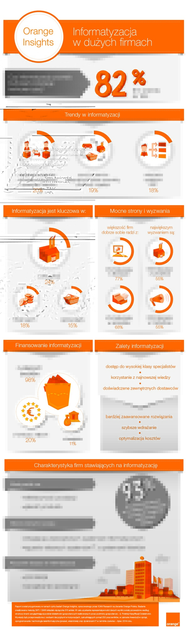 Pierwszy z raportów Orange Insights został poświęcony określeniu stanu informatyzacji w działających w Polsce małych i średnich firmach. Tematem kolejnego jest postrzeganie informatyzacji przez przedstawicieli dużych firm zatrudniających więcej niż 250 pracowników.
