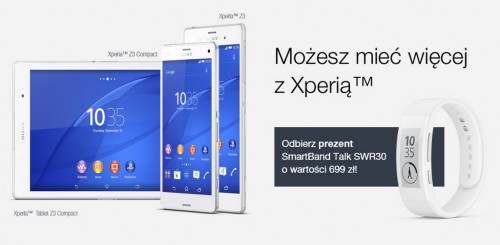 Do 31.03.2015, w ramach oferty Orange „możesz mieć więcej z Xperią”, kupując telefon Sony z serii Xperia Z3, lub Sony Xperia Z3 Compact otrzymacie prezent od Sony – elegancki SmartBand Talk SWR30 o wartości 699 zł.