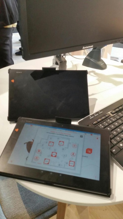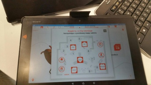 Klienci oczekujący na obsługę otrzymują tablet, pełniący rolę wirtualnego przewodnika po salonie. Dzięki zastosowaniu beaconów, na ekranie tabletu pojawia się informacja, w której strefie klient obecnie przebywa i jakie rozwiązania są w niej polecane. Tablety wyposażone są w technologię NFC – skanując dowolny produkt dostępny w salonie, klient uzyska natychmiast pełną informację o nim.