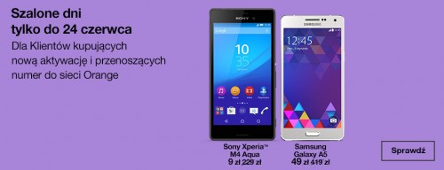 Operator poleca zwłaszcza Sony Xperię M4 Aqua za 9 zł (stara cena 229 zł) i Samsunga Galaxy A5 za 49 zł (stara cena 419 zł) dla osób indywidualnych. Natomiast w ofercie dla firm Samsunga Galaxy S6 za 9 zł netto (stara cena 799 zł) oraz iPhone`a 6 za 9 zł netto (stara cena 1039 zł).