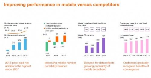 • stabilne przychody z usług mobilnych rok-do-roku, dzięki znaczącemu przyrostowi liczby klientów, rosnącemu ruchowi oraz wyższym przychodom ze sprzedaży sprzętu