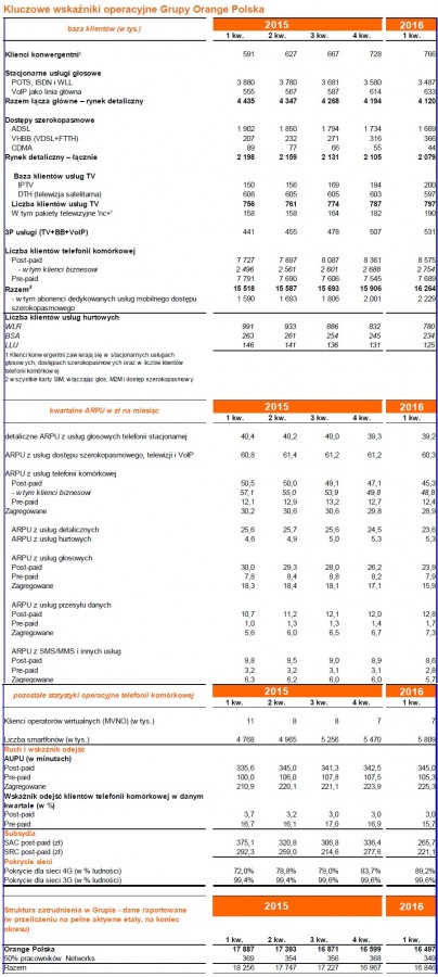 Orange Polska – wybrane dane finansowe i operacyjne za 1 kw 2016: Tutaj