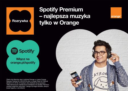 Tym samym Orange rozpoczyna współpracę ze Spotify – największą streamingową platformą muzyczną, z której korzystają miliony osób na całym świecie. Dodatkowo Orange ma dla najbardziej aktywnych użytkowników, którzy żyją muzyką cały dzień ofertę. To nieograniczona transmisja danych na streaming muzyki ze Spotify za jedyne 4,99 zł miesięcznie. Oferta dotyczy klientów abonamentowych Orange oraz na kartę.