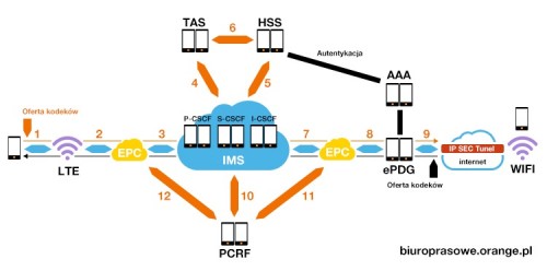 Jak się pewnie domyślacie Wi-Fi nie zawsze jest bezpieczne – szczególnie w miejscach, gdzie przewija się wiele osób. By dowiedzieć się czemu, wystarczy zajrzeć do tekstu Michała Rosiaka o bankomacie połączonym z siecią przez WiFi. Dlatego kluczową funkcjonalnością, poza handoverem, które musieliśmy przetestować i wdrożyć było zapewnienie bezpieczeństwa łącza przy wysokiej wydajności całego systemu. W Orange wdrożyliśmy w tym celu dwie funkcjonalności. Pierwsza – ePDG, czyli evolved Packet Data Gateway odpowiada za zestawienie i utrzymanie tunelu IP-SEC ze wszystkimi aktywnymi użytkownikami WiFi Calling. Druga to platforma AAA (Authentication Authorization Accounting), dzięki której każdy klient próbujący zestawić tunel IP-SEC do sieci rdzeniowej podawany jest procedurze autentykacji takiej samej jak dla VoLTE. Oznacza to, że z WiFi Calling mogą korzystać wyłącznie urządzenia posiadające kartę SIM. Jest to „cena” za bezpieczeństwo transmisji danych.