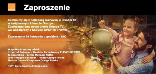 24 listopada Orange zaprezentuje nową ofertę w świątecznym klimacie. Nowa oferta Orange TV przygotowana została we współpracy z ELEVEN SPORTS i Netflix.