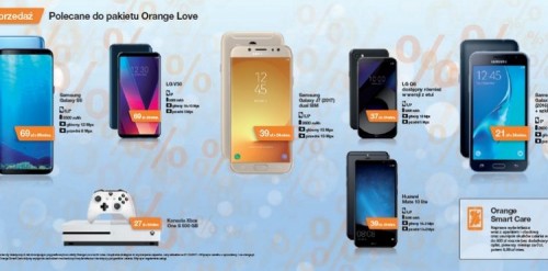 Prócz smartfonów, w wyprzedażowej cenie można nabyć także inne urządzenia, które doskonale uzupełniają usługi zawarte w pakiecie Orange Love: konsolę Xbox One S 500 GB za 27zł miesięcznie (x 36 miesięcy) oraz telewizory: 32” Samsung Full HD Smart TV M5602 za 39 zł miesięcznie (x 36 miesięcy),50” Samsung UHD (4K) Smart TV MU6102 za 59 zł miesięcznie (x 36 miesięcy) oraz 55” Samsung UHD (4K) Smart TV MU6102 za 71 zł miesięcznie (x 36 miesięcy).
