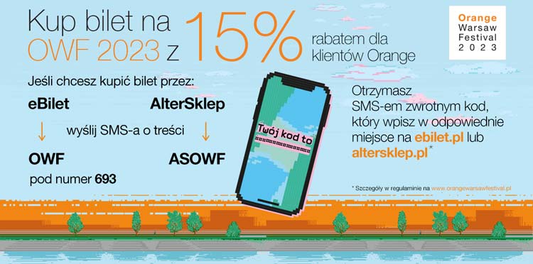 Orange przygotował dla swoich klientów 15 procentową zniżkę na zakup biletów festiwalowych. Kupując karnet Early Birds dla siebie i osoby towarzyszącej zaoszczędzić można 158 zł. Sprzedaż ruszyła dzisiaj. Pula promocyjnych biletów jest ograniczona, dlatego warto przemyśleć swoje festiwalowe plany już teraz.