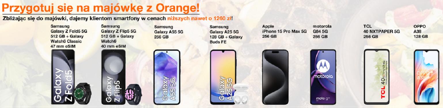 Orange rusza z akcją „złap okazje na majówkę”, w ramach której przecenia wybrane modele smartfonów. Ceny spadają nawet o około 1200 złotych. Polecamy tutaj telefony, takie jak: Samsung Galaxy A25, A55, modne składaki: Z Flip5, Z Fold5 i TCL 40 Nxtpaper 5G (z trybem oszczędzającym wzrok).