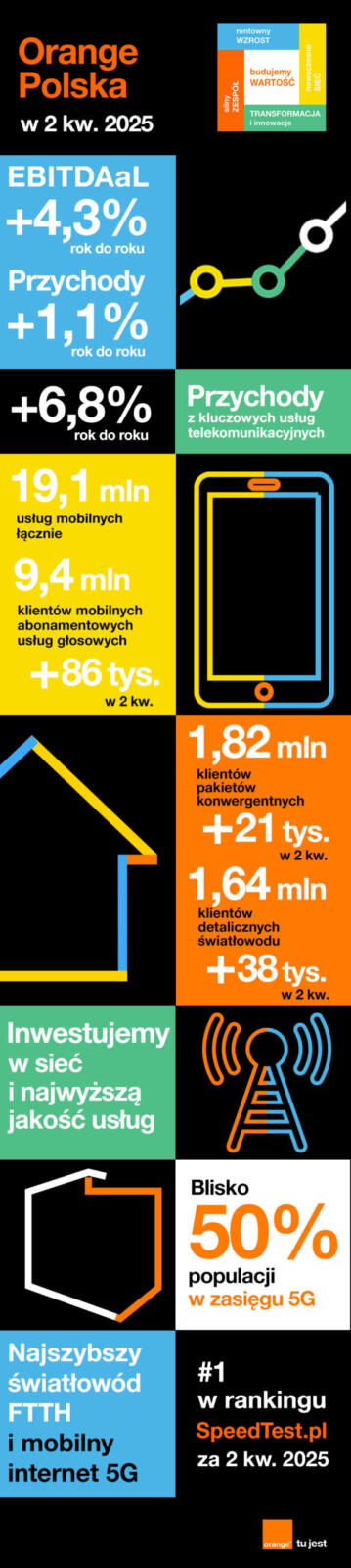 Pełny raport z wynikami Orange Polska za 2 kwartał i całe pierwsze półrocze 2025 znajduje się na www.orange-ir.pl