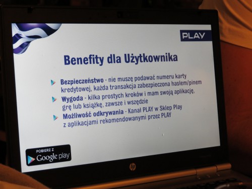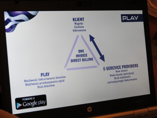 Play podpisał umowę z firmą Google, dzięki której abonenci będą mogli korzystać z direct billing – „Dopisz do rachunku PLAY”. Zapraszamy na galerię zdjęć z oficjalnej prezentacji usługi oraz prezentacji możliwości platformy direct billing nastąpi podczas imprezy „Play For Future powered by Google”.