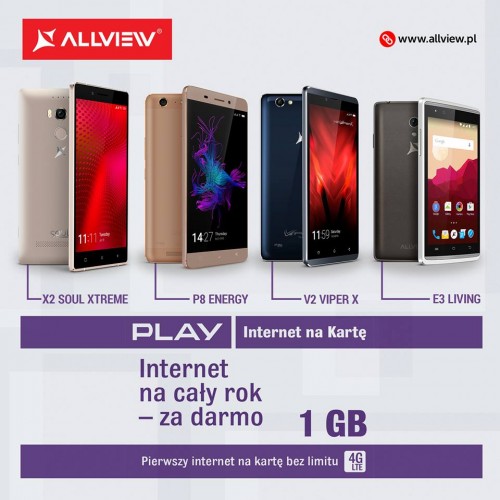 Allview Polska, europejska marka smartfonów i tabletów, do każdego smartfona kupionego w sklepie internetowym producenta dołącza 1GB internetu od Play.