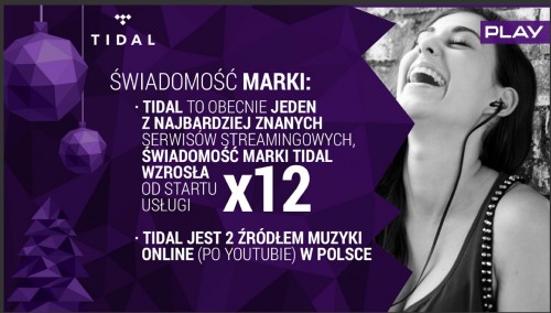 Gdy wybieraliśmy partnera do akcji, której celem była promocja legalnych źródeł muzyki, naturalnym wyborem dla nas był TIDAL – serwis, którego współwłaścicielami są sami muzycy. Nie bez znaczenia dla nas było to, ze mogliśmy zaoferować konsumentom dostęp do muzyki w wysokiej jakości, bez strat, jak również to, że TIDAL oferował i oferuje swoim odbiorcom doradztwo w postaci playlist tworzonych przez prawdziwych znawców tematu – tłumaczy Bartek Dobrzyński, szef marketingu i członek zarządu Play. Mam ogromną satysfakcję z tego, że osiągnęliśmy cel, który nam przyświecał i przekonaliśmy Polaków, że warto sięgać po takie źródła muzyki, które oferują twórcom gratyfikację finansową, a nie jedynie promują i wykorzystują ich twórczość.