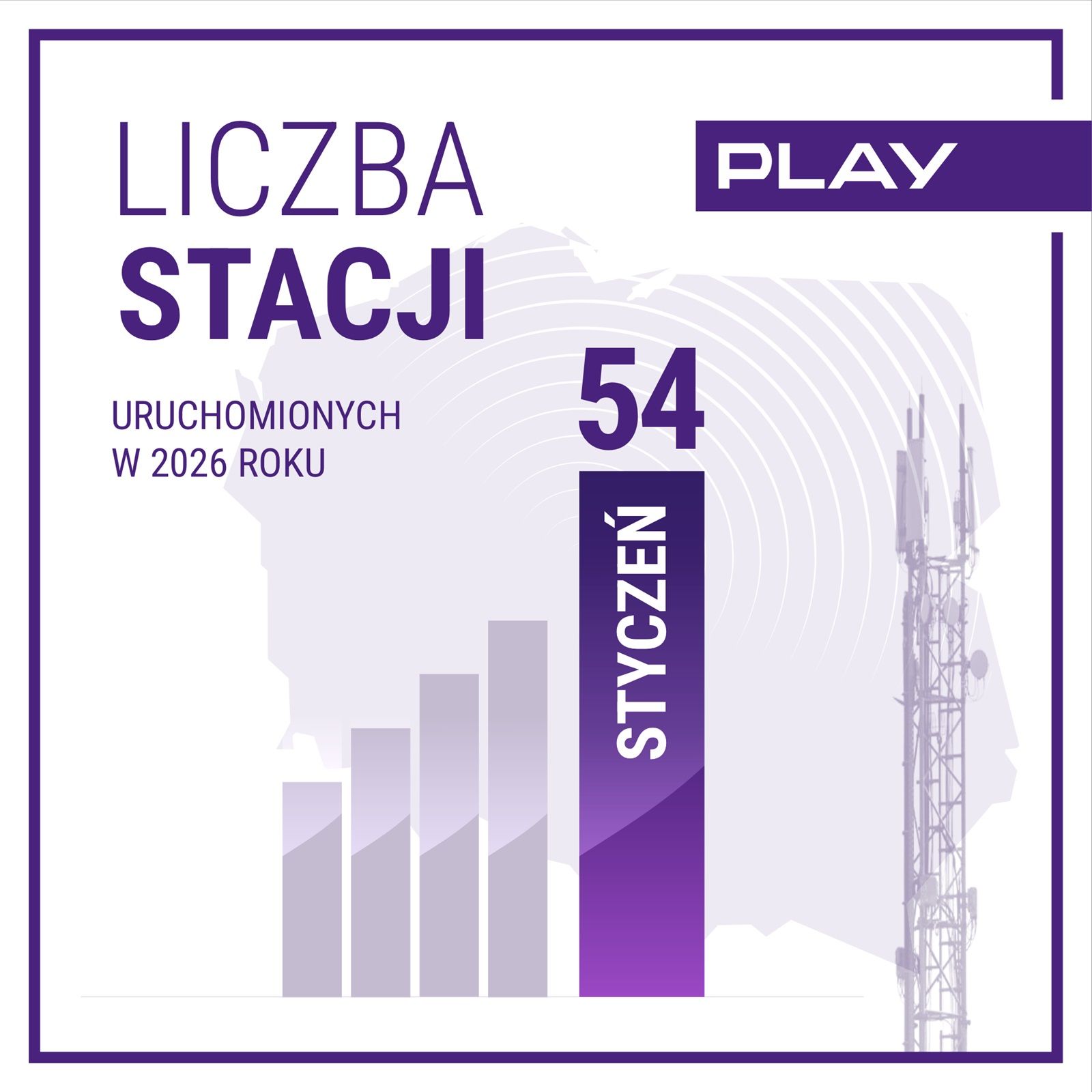 W ramach mobilnej sieci Play na koniec stycznia działało 13 229 stacji bazowych. Tylko w pierwszym miesiącu bieżącego roku oddano do użytkowania 54 obiekty.