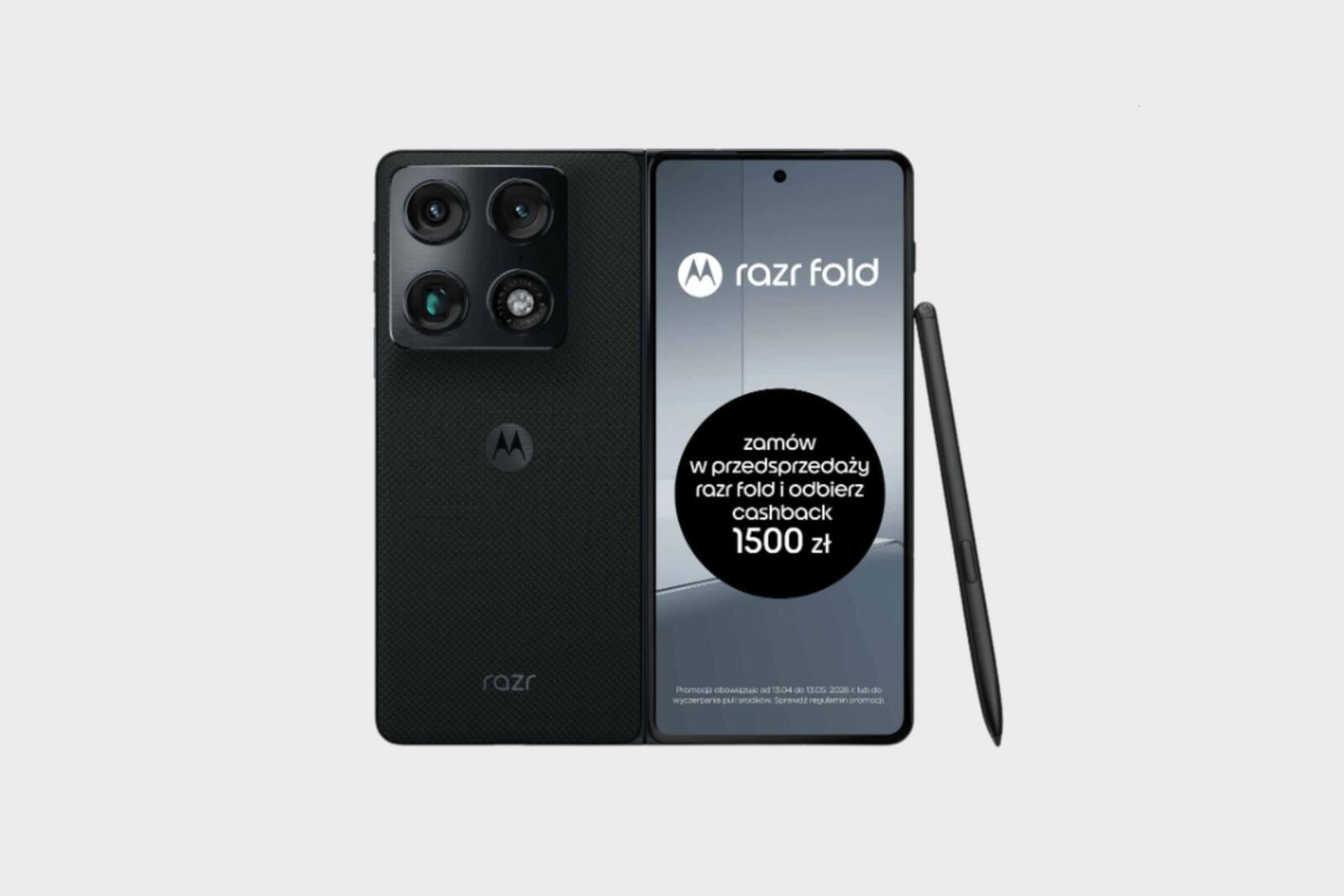 Dla chętnych do zakupu przygotowana jest specjalna promocja cashback. Każdy klient, który w terminie do 13 maja 2026 roku kupi model Motorola razr fold 5G i zarejestruje swój zakup zgodnie z zasadami akcji, otrzyma 1500 złotych zwrotu na konto.