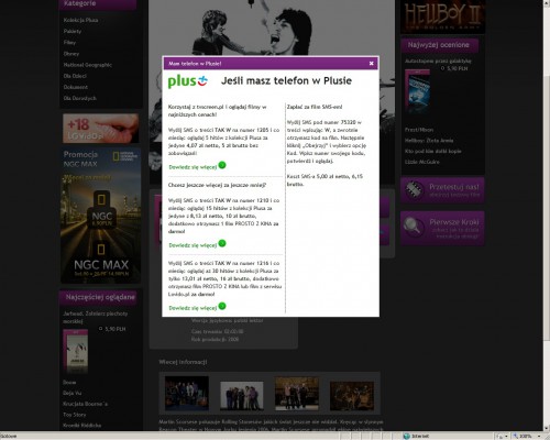 Najbardziej atrakcyjną ofertą, dostępną wyłącznie dla klientów Plusa są trzy pakiety udostępniające filmy z Kolekcji Plusa w najniższych na rynku cenach za film: pakiet 5 filmów za 5 zł brutto, 15 filmów za 10 zł brutto i 30 filmów za 16 zł brutto. Koszt obejrzenia pojedynczego filmu to odpowiednio 1 zł, 67 gr i 54 gr za film! Żeby skorzystać z pakietowej oferty VoD, wystarczy zarejestrować się na stronie: www.tvscreen.pl i wybrać jeden z trzech pakietów dostępów do filmów wysyłając SMS aktywujący: