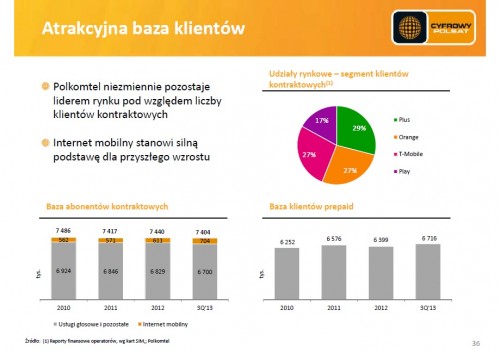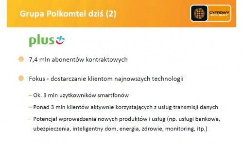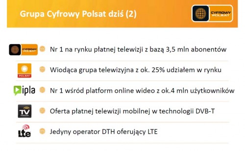 – Jesteśmy bardzo zadowoleni z wyników Grupy za III kw. br. W segmencie usług świadczonych klientom indywidualnym utrzymujemy stabilną, 3,5-milionową bazę abonentów płatnej telewizji, która stanowi dla nas duży potencjał do dosprzedaży pakietów i usług dodatkowych, w szczególności usług dostępu do Internetu. W segmencie nadawania i produkcji telewizyjnej odnotowaliśmy wzrost udziałów w oglądalności i rynku reklamy, na co wpływ miało m.in. dołączenie kanałów TV4 i TV6 do Grupy Polsat – mówi Dominik Libicki, Prezes Zarządu, Cyfrowy Polsat S.A.