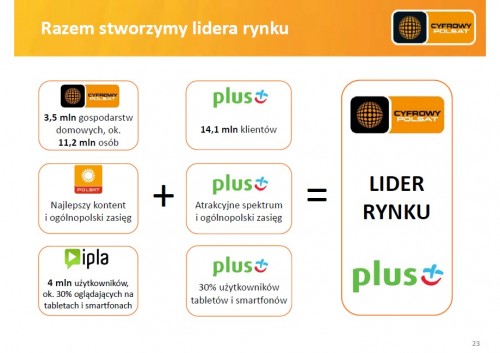 Cyfrowy Polsat zawarł umowę przejęcia 83,8 proc. akcji spółki Metelem, która jest właścicielem 100 proc. akcji Polkomtela, operatora sieci Plus. Kmunikat prasowy mówiący o wynikach finansowych Grupy za III kw. br. oraz prezentację omawiającą transakcję zakupu spółki Polkomtel.