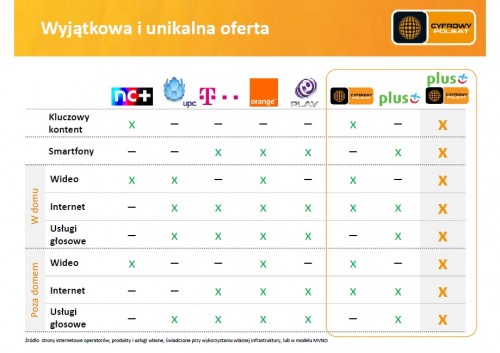 Z kazdej. Najwiecej klientow kontraktowych. Najbardziej rentowny. Ma najwiekszy zasieg. Najlepsze technologie. Najwiecej czestotliwosci itd.