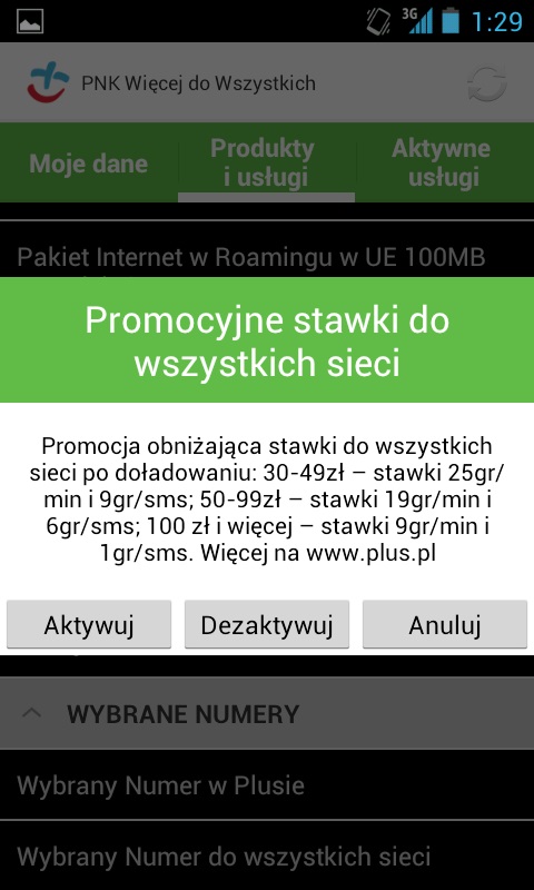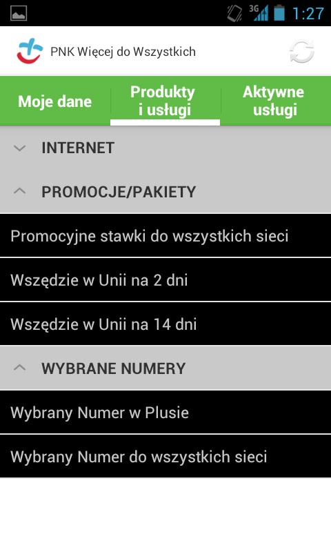 - pozwala włączyć lub wyłączyć dodatkowe usługi dostępne w aktualnej taryfie.