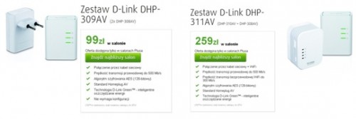- za 259 zł zestaw D-Link DHP-311AV z adapterem DHP-308AV korzystającym z kabla sieciowego Ethernet oraz adapterem DHP-310AV WiFi.
