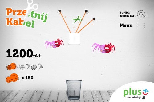 W najnowszej zabawie Plusa na Facebooku zadaniem graczy jest przecinanie kabla tak, by zawieszony na nim modem wpadł do kosza na podłodze. Można zdobywać dodatkowe punkty-bonusy, w zależności od tego, w jakiej kolejności zostaną przecięte kable. Na zakończenie rozgrywki należy odpowiedzieć na pytanie otwarte związane z praktycznymi walorami bezprzewodowego internetu. Nagrodami w konkursie, który trwa do 30 czerwca są dwa tablety Lenovo Yoga 3G.