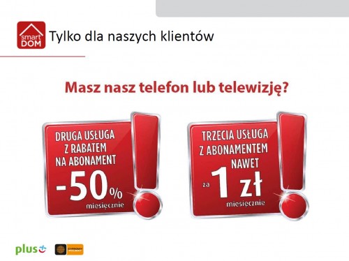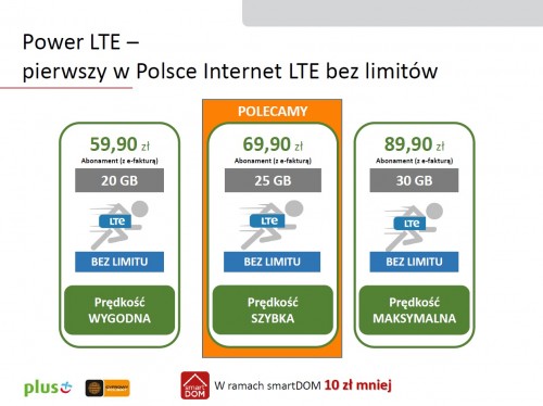 Internet Power LTE dostępny będzie również w programie smartDOM i wyjątkowej promocji dla obecnych klientów Plusa i Cyfrowego Polsatu zapewniającej „drugi produkt za połówkę, trzeci za złotówkę”. Można go dokupić do posiadanej usługi telewizyjnej lub telefonicznej zarówno jako drugi (50% taniej), jak i trzeci produkt, otrzymując dedykowane rabaty przez całą długość umowy.