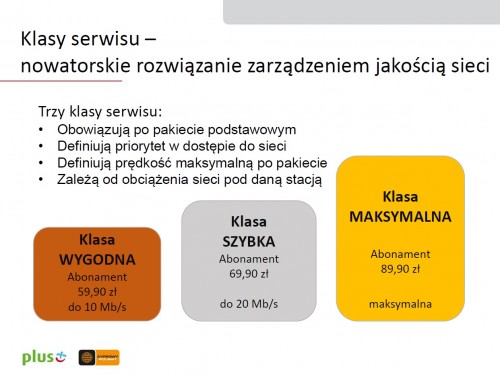 • Trzy klasy serwisu pozwalające na lepsze zarządzanie jakością sieci w sytuacji jej obciążenia pod dana stacją.