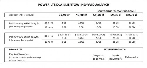 Od 3 lipca do wprowadzonej już w czerwcu oferty Power LTE z abonamentami miesięcznymi za 59,90 zł, 69,90 zł i 89,90 zł zostaną dodane: