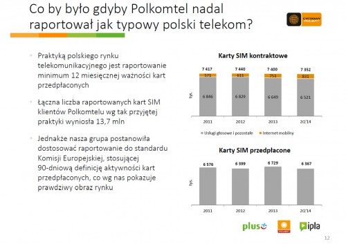 Cyfrowy Polsat i Polkomtel, grupa medialno-telekomunikacyjna kontrolowana przez Zygmunta Solorza Żaka, postanowiła dostosować sposób prezentacji danych operacyjnych do nowej struktury i sposobu działania. Łączna liczba raportowanych kart SIM Usługi głosowe i pozostałe Internet mobilny klientów Polkomtelu wg tak przyjętej praktyki wyniosła 13,7 mln.